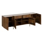 El aparador blanco natural en mármol y madera es la elección ideal para quienes buscan una pieza de mobiliario única. Su estructura de madera de acacia, combinada con una superficie de mármol natural, lo convierte en un mueble de gran carácter y distinción. El mármol, con sus sutiles variaciones, aporta exclusividad y un acabado impecable. Sus generosas dimensiones de 200x41x71 cm albergan 4 puertas y 2 cajones (de 41,5x31x10 cm) para guardar todo lo que necesitas, desde vajilla hasta objetos decorativos. Las patas de 14 cm de altura en hierro añaden un toque ligero y moderno, facilitando además la limpieza. Perfecto para estancias amplias, este aparador combina diseño contemporáneo con funcionalidad, siendo una pieza atemporal que realza cualquier ambiente. Aporta lujo y practicidad a tu hogar con este aparador excepcional. ¡No dejes escapar esta oportunidad!
